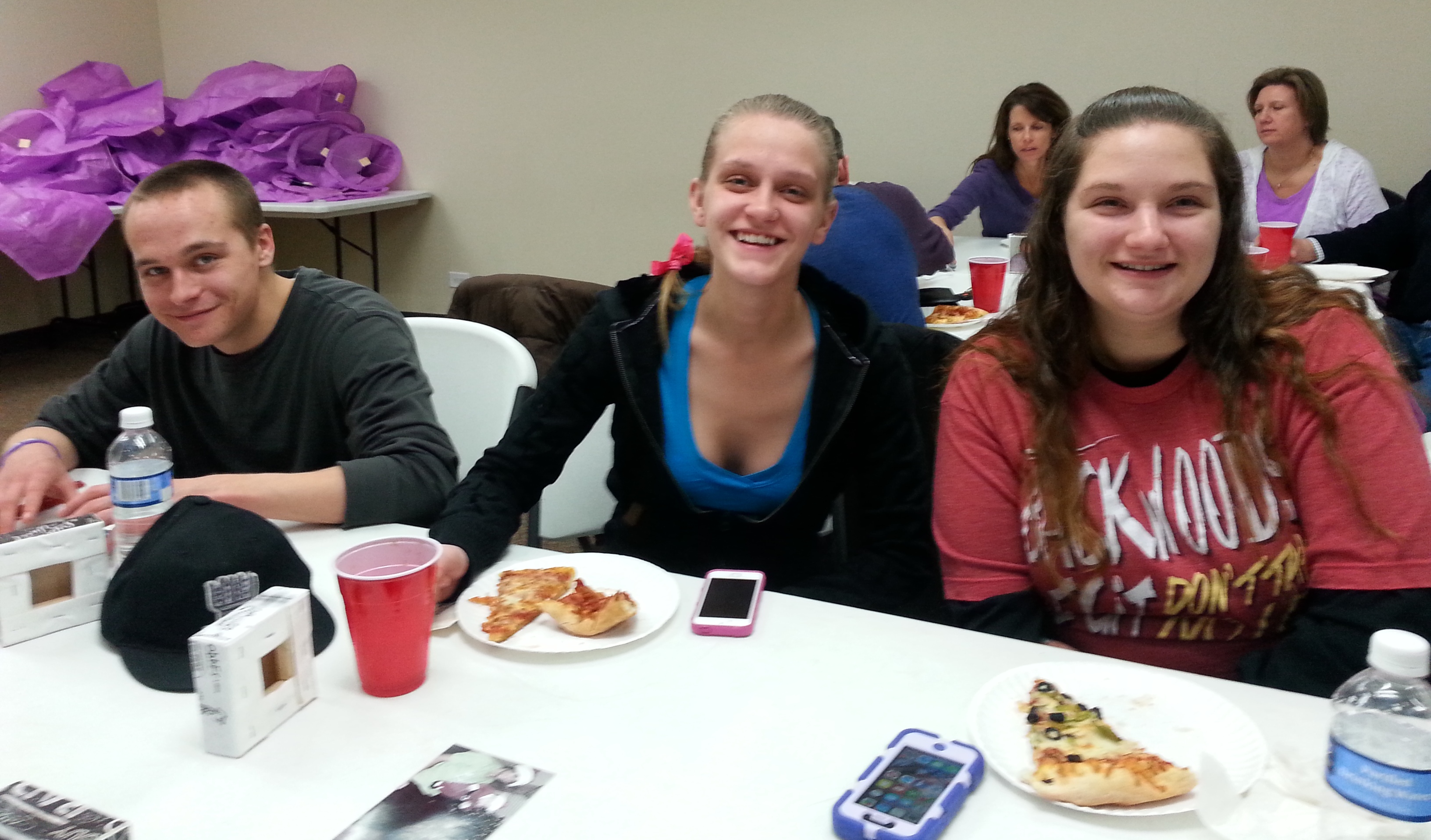 This year we reserved a wide open room at the rec center and ordered pizza in. It suited us much better. We could spread out our tables of pizza, pop, cake, canvas pictures of Kade I made to take home, and sky lanterns to write messages on.
